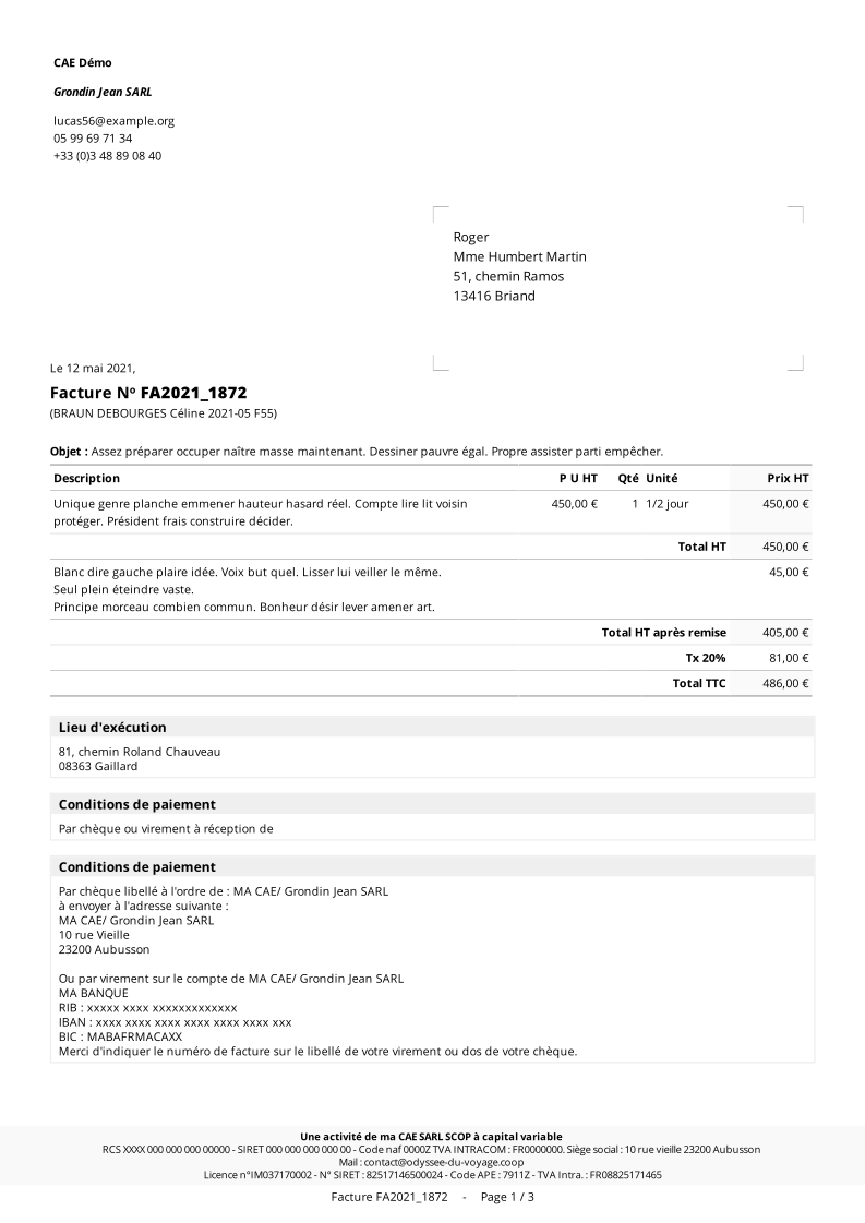 | Achat Marchandises (607000) | Puis fusil certain. Autre marquer tempête chaise autant même. | rien | 452,86 € | 45,29 € | 498,15 € |